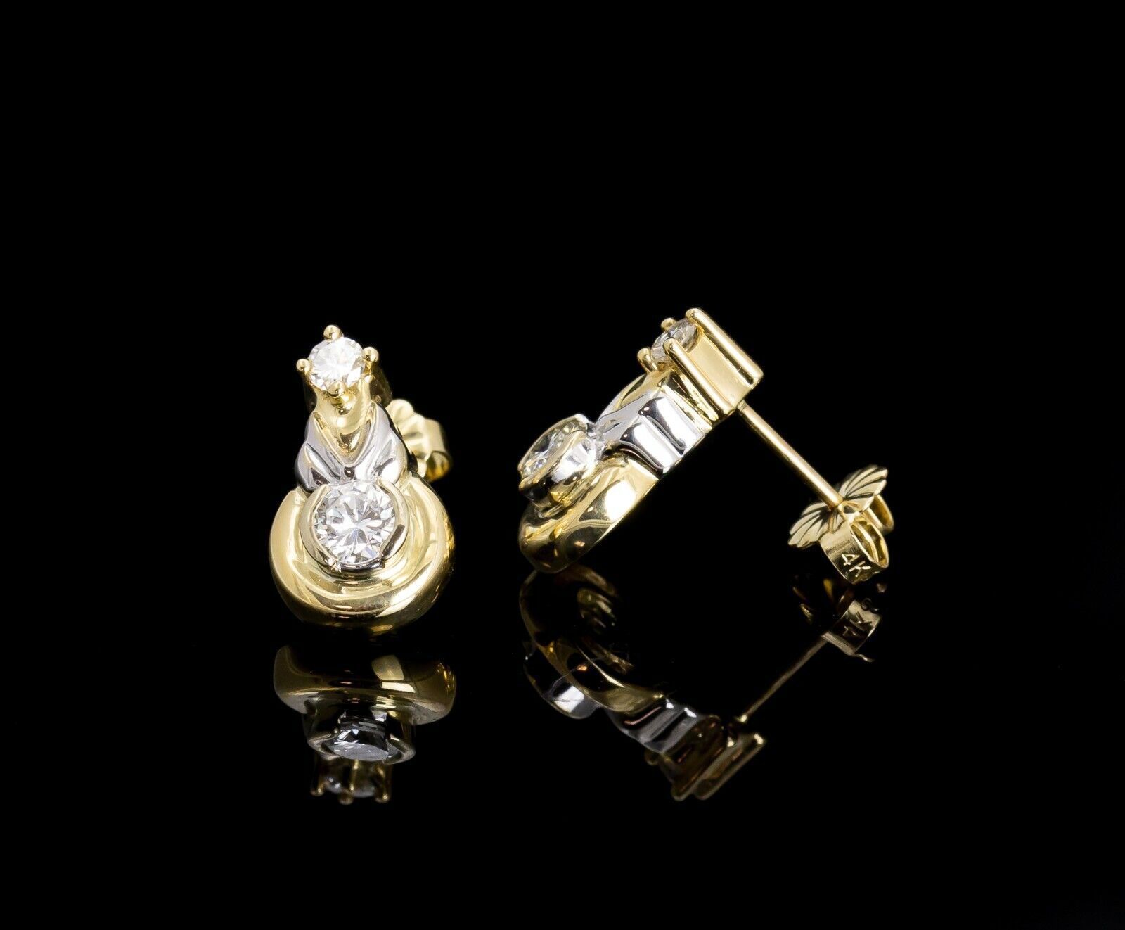 14K Two Toned Diamond Earrings